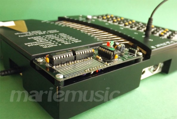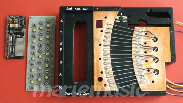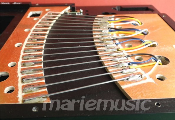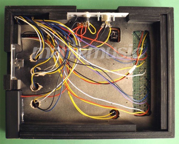 Ansicht von unten: Hier kommen alle Kabel von den neuen Tastern und den neuen "Saiten" an.....