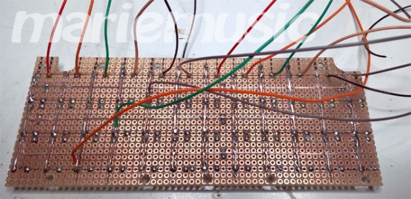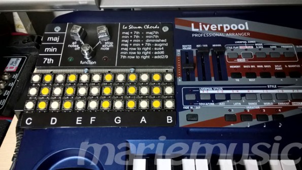 Und das Bild unten zeigt das TasterFeld für die ChordSteuerung mit seiner MatrixVerdrahtung. (Wie diese genau gemacht wird erkennt man in der Schaltung der LeStrum).