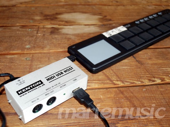 Das Interface von Kenton funktioniert angeblich mit allen class compliant USB Geräten zusammen. Ich kann das natürlich nicht überprüfen, aber immerhin, mit meinem Nanopad2 zusammen funktioniert es völlig problemlos: Nanopad an den USB-Anschluss, MIDI Out an einen beliebigen MIDI Synth oder Expander. Perfekt!