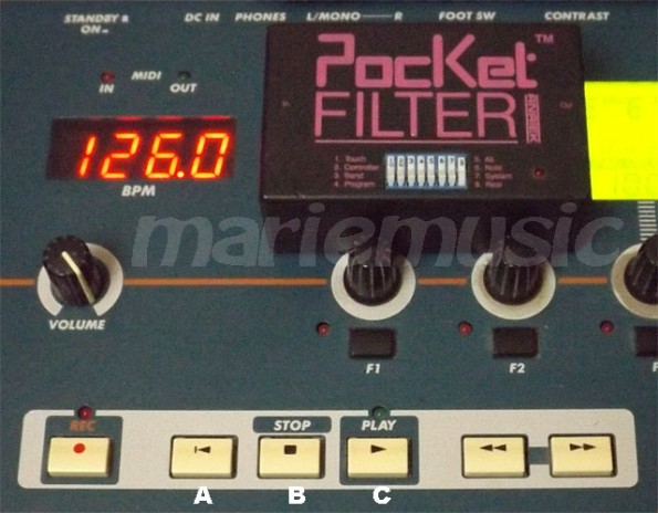 Pocket Filter ein aktiver MIDI Thru nachgeschaltet, und von diesem aus